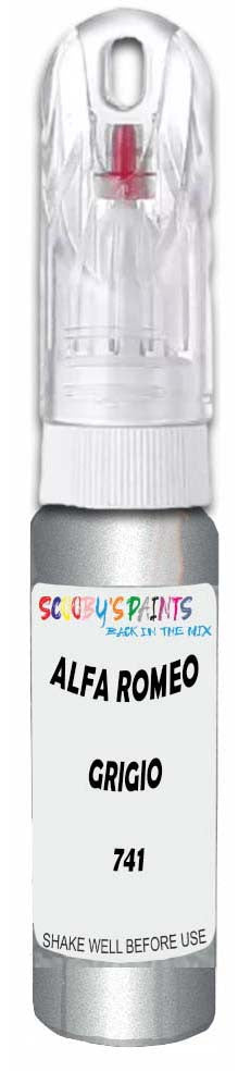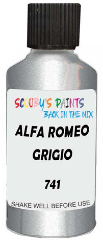 Professionally mixed touch-up paint matched to Alfa Romeo factory colour 741 – Grigio Argento Metallic for model years 1970–1977. Ideal for repairing stone chips, light scratches and minor blemishes while helping to prevent corrosion.