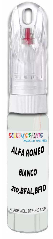 Professionally mixed touch-up paint matched to Alfa Romeo factory colour 210,BFAL,BFID – Bianco Freddo for model years 1988–2003. Ideal for repairing stone chips, light scratches and minor blemishes while helping to prevent corrosion.