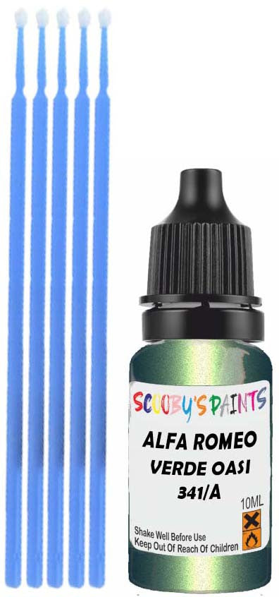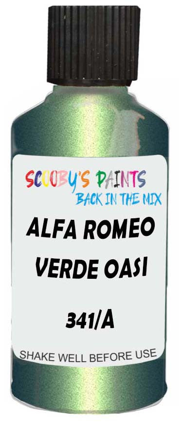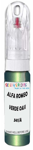 Professionally mixed touch-up paint matched to Alfa Romeo factory colour 341/A – Verde Oasi Mica for model years 1998–2001. Ideal for repairing stone chips, light scratches and minor blemishes while helping to prevent corrosion.