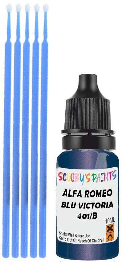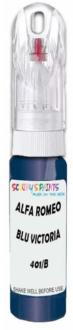 Professionally mixed touch-up paint matched to Alfa Romeo factory colour 401/B – Blu Victoria Mica for model years 1998–2001. Ideal for repairing stone chips, light scratches and minor blemishes while helping to prevent corrosion.