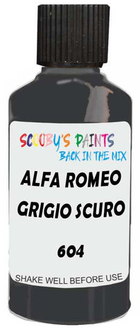 Professionally mixed touch-up paint matched to Alfa Romeo factory colour 604 – Grigio Scuro Opaco for model years 1994–1995. Ideal for repairing stone chips, light scratches and minor blemishes while helping to prevent corrosion.