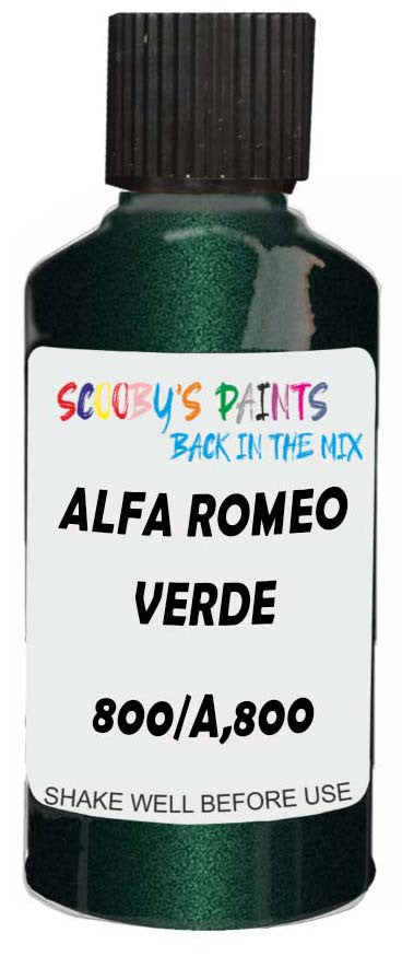 Professionally mixed touch-up paint matched to Alfa Romeo factory colour 800/A,800 – Verde Visconti Metallic for model years 2017–2021. Ideal for repairing stone chips, light scratches and minor blemishes while helping to prevent corrosion.