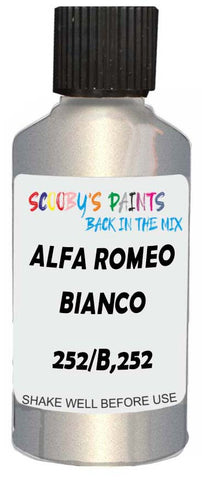 Professionally mixed touch-up paint matched to Alfa Romeo factory colour 252/B,252 – Bianco Lunare Metallic for model years 2019–2023. Ideal for repairing stone chips, light scratches and minor blemishes while helping to prevent corrosion.