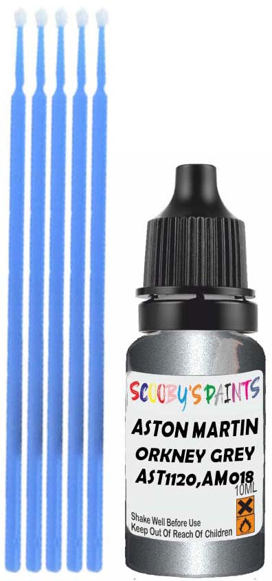 Professionally mixed touch-up paint matched to Aston Martin factory colour AST1120,AM018W – Orkney Grey Metallic for model years 1999–2002. Ideal for repairing stone chips, light scratches and minor blemishes while helping to prevent corrosion.