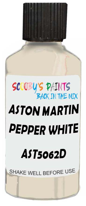 Professionally mixed touch-up paint matched to Aston Martin factory colour AST5062D – Pepper White for model years 2007–2007. Ideal for repairing stone chips, light scratches and minor blemishes while helping to prevent corrosion.