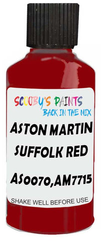 Professionally mixed touch-up paint matched to Aston Martin factory colour AS0070,AM7715 – Suffolk Red for model years 1994–2022. Ideal for repairing stone chips, light scratches and minor blemishes while helping to prevent corrosion.