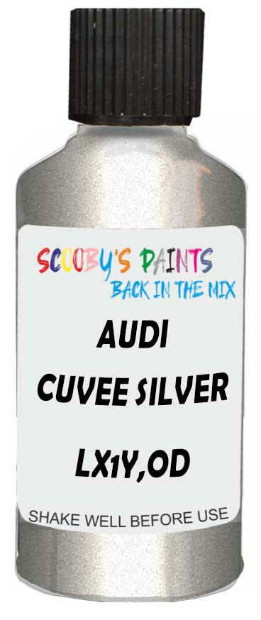 Professionally mixed touch-up paint matched to Audi factory colour LX1Y,OD – Cuvee Silver Metallic for model years 2011–2020. Ideal for repairing stone chips, light scratches and minor blemishes while helping to prevent corrosion.