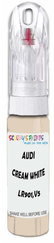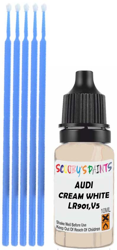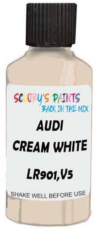 Professionally mixed touch-up paint matched to Audi factory colour LR901,V5 – Cream White for model years 1994–2008. Ideal for repairing stone chips, light scratches and minor blemishes while helping to prevent corrosion.