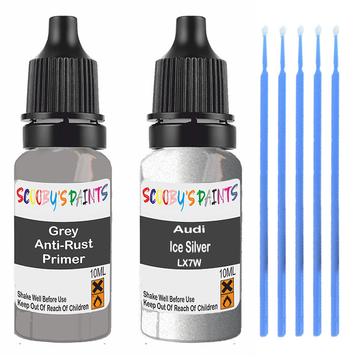 Touch Up Paint For Audi A4 Ice Silver Lx7W Grey Scratch Stone Chip 10Ml
