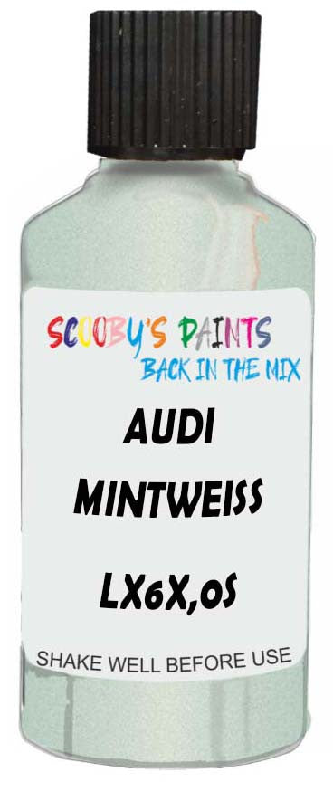 Professionally mixed touch-up paint matched to Audi factory colour LX6X,0S – Mintweiss Perleffekt for model years 2012–2012. Ideal for repairing stone chips, light scratches and minor blemishes while helping to prevent corrosion.