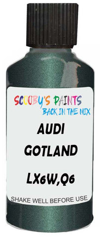 Professionally mixed touch-up paint matched to Audi factory colour LX6W,Q6 – Gotland Green Pearl for model years 2014–2019. Ideal for repairing stone chips, light scratches and minor blemishes while helping to prevent corrosion.
