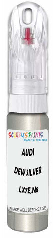 Professionally mixed touch-up paint matched to Audi factory colour LX7E,N8 – Dew Silver Metallic for model years 2018–2024. Ideal for repairing stone chips, light scratches and minor blemishes while helping to prevent corrosion.