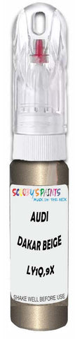 Professionally mixed touch-up paint matched to Audi factory colour LY1Q,9X – Dakar Beige Metallic for model years 2004–2012. Ideal for repairing stone chips, light scratches and minor blemishes while helping to prevent corrosion.