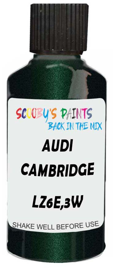 Professionally mixed touch-up paint matched to Audi factory colour LZ6E,3W – Cambridge Green Pearl Effect for model years 2002–2020. Ideal for repairing stone chips, light scratches and minor blemishes while helping to prevent corrosion.