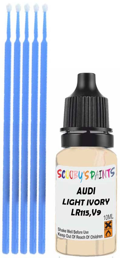 Professionally mixed touch-up paint matched to Audi factory colour LR115,V9 – Light Ivory for model years 1996–2023. Ideal for repairing stone chips, light scratches and minor blemishes while helping to prevent corrosion.
