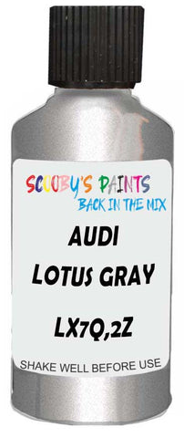 Professionally mixed touch-up paint matched to Audi factory colour LX7Q,2Z – Lotus Gray Metallic for model years 2012–2016. Ideal for repairing stone chips, light scratches and minor blemishes while helping to prevent corrosion.