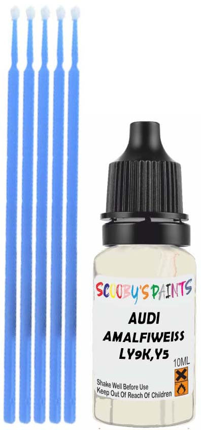 Professionally mixed touch-up paint matched to Audi factory colour LY9K,Y5 – Amalfiweiss for model years 2010–2021. Ideal for repairing stone chips, light scratches and minor blemishes while helping to prevent corrosion.