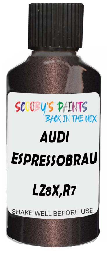 Professionally mixed touch-up paint matched to Audi factory colour LZ8X,R7 – Espressobraun Perleffekt for model years 1997–2005. Ideal for repairing stone chips, light scratches and minor blemishes while helping to prevent corrosion.