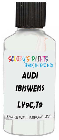 Professionally mixed touch-up paint matched to Audi factory colour LY9C,T9 – Ibisweiss for model years 2006–2016. Ideal for repairing stone chips, light scratches and minor blemishes while helping to prevent corrosion.