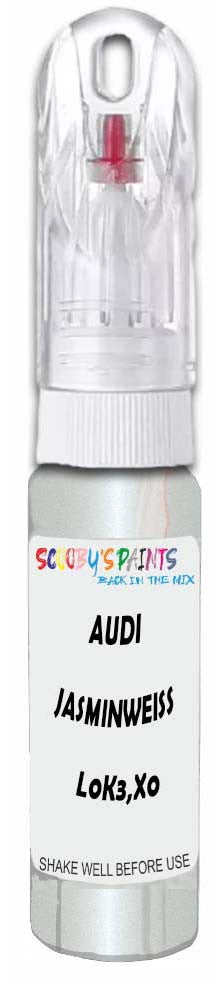 Professionally mixed touch-up paint matched to Audi factory colour L0K3,X0 – Jasminweiss Kristallefekt Perl for model years 2024–2024. Ideal for repairing stone chips, light scratches and minor blemishes while helping to prevent corrosion.