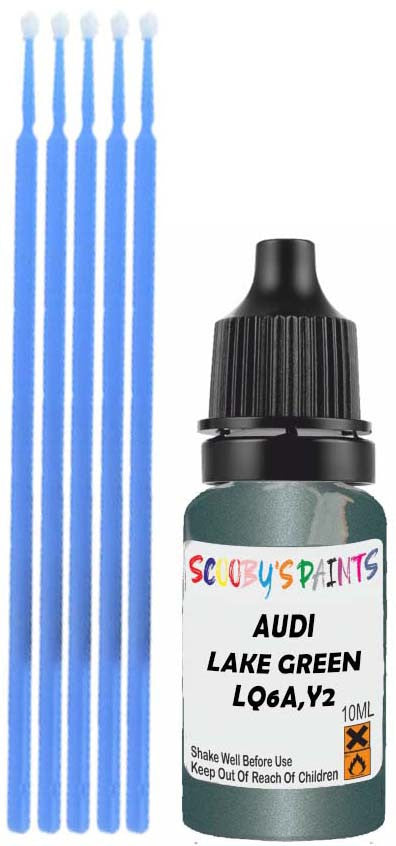 Professionally mixed touch-up paint matched to Audi factory colour LQ6A,Y2 – Lake Green Metallic for model years 2022–2022. Ideal for repairing stone chips, light scratches and minor blemishes while helping to prevent corrosion.