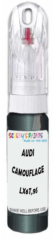 Professionally mixed touch-up paint matched to Audi factory colour LX6T,9S – Camouflage Green Metallic for model years 2015–2023. Ideal for repairing stone chips, light scratches and minor blemishes while helping to prevent corrosion.