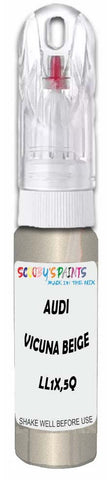 Professionally mixed touch-up paint matched to Audi factory colour LL1X,5Q – Vicuna Beige Metallic for model years 2018–2024. Ideal for repairing stone chips, light scratches and minor blemishes while helping to prevent corrosion.