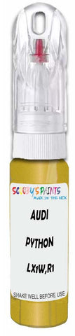 Professionally mixed touch-up paint matched to Audi factory colour LX1W,R1 – Python Yellow Metallic for model years 2021–2024. Ideal for repairing stone chips, light scratches and minor blemishes while helping to prevent corrosion.