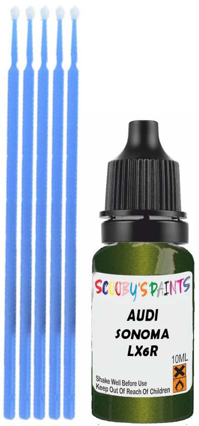Professionally mixed touch-up paint matched to Audi factory colour LX6R – Sonoma Green Pearl for model years 2017–2022. Ideal for repairing stone chips, light scratches and minor blemishes while helping to prevent corrosion.