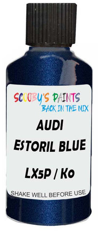 Professionally mixed touch-up paint matched to Audi factory colour LX5P / K0 – Estoril Blue Crystal Pearl for model years 2011–2016. Ideal for repairing stone chips, light scratches and minor blemishes while helping to prevent corrosion.