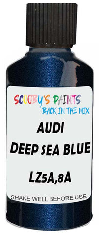 Professionally mixed touch-up paint matched to Audi factory colour LZ5A,8A – Deep Sea Blue Pearl for model years 2006–2014. Ideal for repairing stone chips, light scratches and minor blemishes while helping to prevent corrosion.