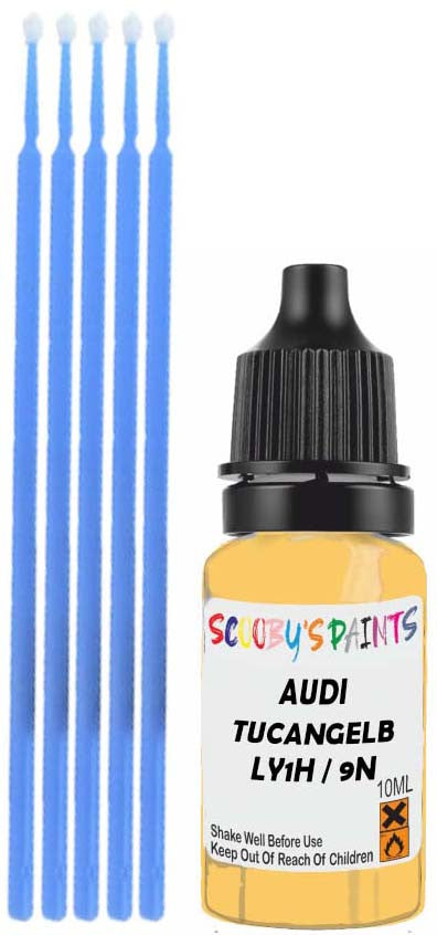 Professionally mixed touch-up paint matched to Audi factory colour LY1H / 9N – Tucangelb for model years 1997–2018. Ideal for repairing stone chips, light scratches and minor blemishes while helping to prevent corrosion.