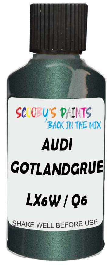 Professionally mixed touch-up paint matched to Audi factory colour LX6W / Q6 – Gotlandgruen Pearl for model years 2014–2019. Ideal for repairing stone chips, light scratches and minor blemishes while helping to prevent corrosion.