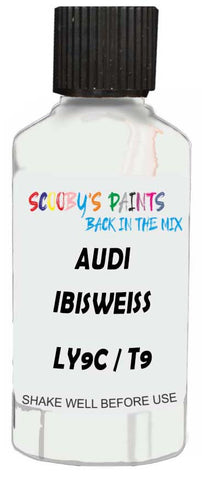 Professionally mixed touch-up paint matched to Audi factory colour LY9C / T9 – Ibisweiss for model years 2006–2024. Ideal for repairing stone chips, light scratches and minor blemishes while helping to prevent corrosion.