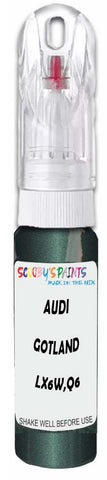 Professionally mixed touch-up paint matched to Audi factory colour LX6W,Q6 – Gotland Green Pearl for model years 2014–2019. Ideal for repairing stone chips, light scratches and minor blemishes while helping to prevent corrosion.