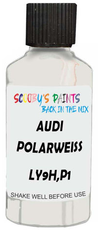 Professionally mixed touch-up paint matched to Audi factory colour LY9H,P1 – Polarweiss for model years 1997–2018. Ideal for repairing stone chips, light scratches and minor blemishes while helping to prevent corrosion.