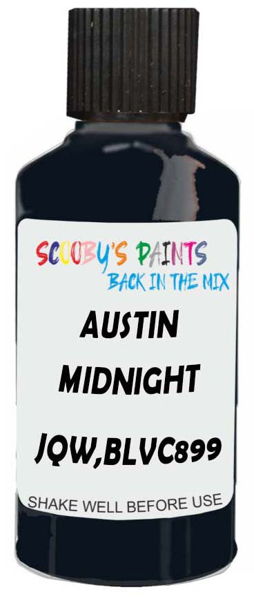 Professionally mixed touch-up paint matched to Austin factory colour JQW,BLVC899 – Midnight Blue for model years 1990–2002. Ideal for repairing stone chips, light scratches and minor blemishes while helping to prevent corrosion.