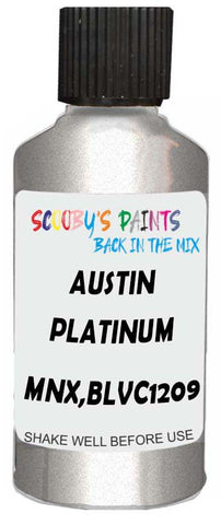 Professionally mixed touch-up paint matched to Austin factory colour MNX,BLVC1209 – Platinum Silver Metallic for model years 1995–2003. Ideal for repairing stone chips, light scratches and minor blemishes while helping to prevent corrosion.