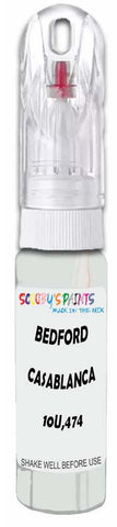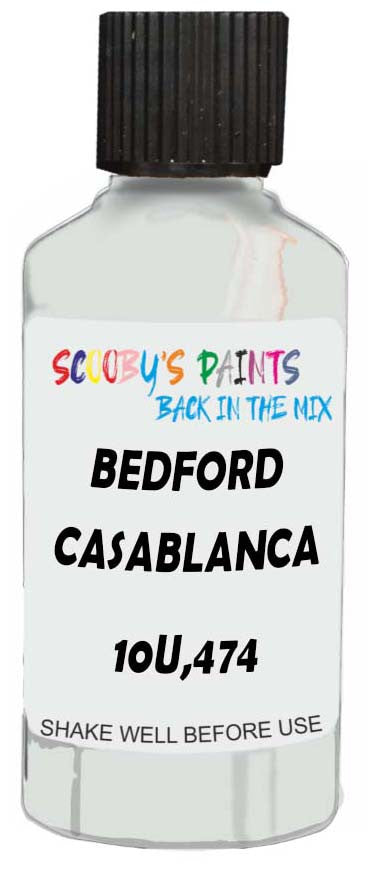 Professionally mixed touch-up paint matched to Bedford factory colour 10U,474 – Casablanca White for model years 1988–2018. Ideal for repairing stone chips, light scratches and minor blemishes while helping to prevent corrosion.