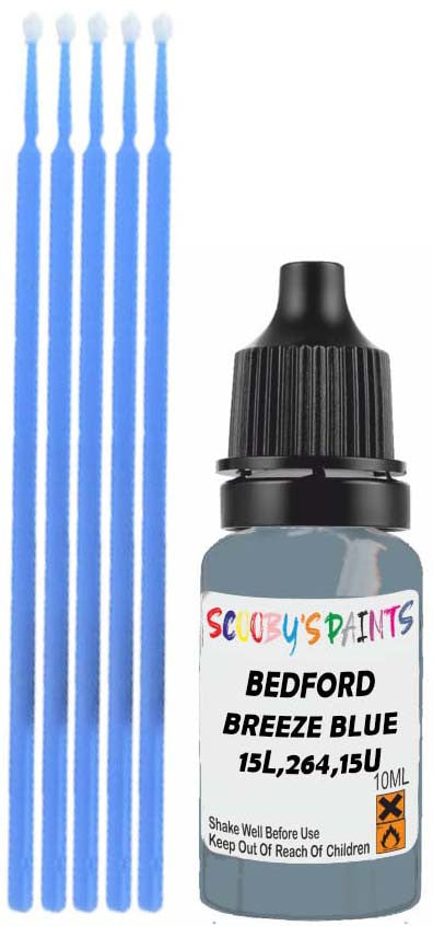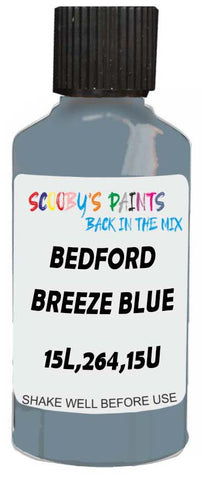 Professionally mixed touch-up paint matched to Bedford factory colour 15L,264,15U – Breeze Blue for model years 1992–1996. Ideal for repairing stone chips, light scratches and minor blemishes while helping to prevent corrosion.