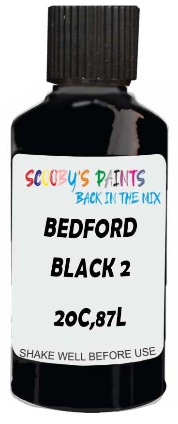 Professionally mixed touch-up paint matched to Bedford factory colour 20C,87L – Black 2 for model years 1999–2010. Ideal for repairing stone chips, light scratches and minor blemishes while helping to prevent corrosion.
