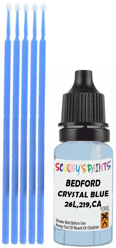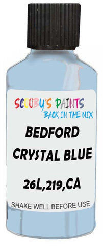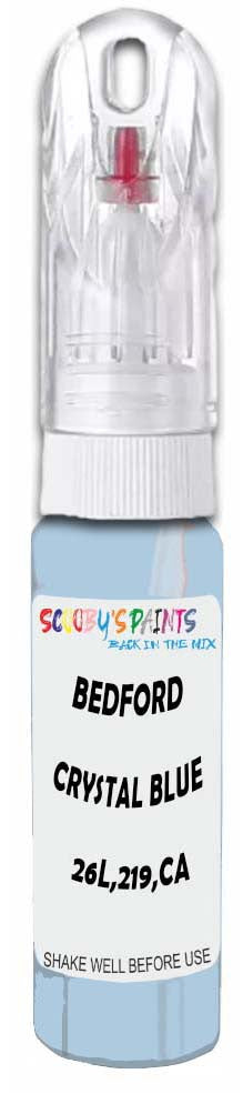 Professionally mixed touch-up paint matched to Bedford factory colour 26L,219,CA – Crystal Blue for model years 1977–1979. Ideal for repairing stone chips, light scratches and minor blemishes while helping to prevent corrosion.