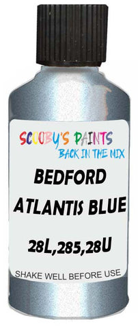 Professionally mixed touch-up paint matched to Bedford factory colour 28L,285,28U – Atlantis Blue for model years 1993–2001. Ideal for repairing stone chips, light scratches and minor blemishes while helping to prevent corrosion.