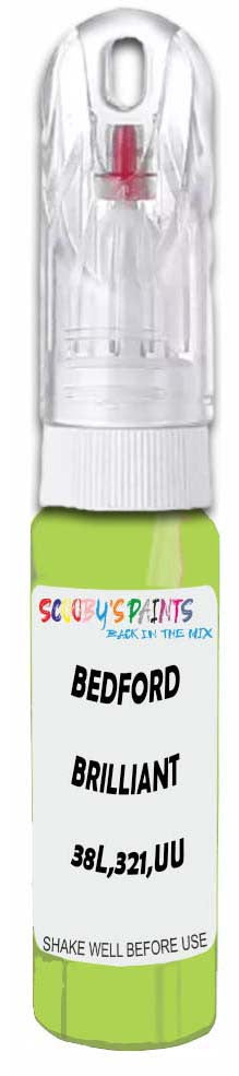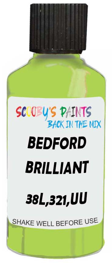 Professionally mixed touch-up paint matched to Bedford factory colour 38L,321,UU – Brilliant Green for model years 1978–1978. Ideal for repairing stone chips, light scratches and minor blemishes while helping to prevent corrosion.