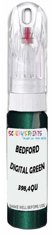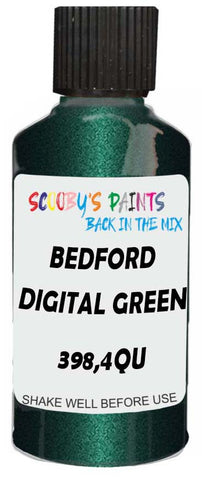 Professionally mixed touch-up paint matched to Bedford factory colour 398,4QU – Digital Green Mica for model years 2004–2008. Ideal for repairing stone chips, light scratches and minor blemishes while helping to prevent corrosion.