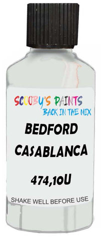 Professionally mixed touch-up paint matched to Bedford factory colour 474,10U – Casablanca White for model years 1988–2018. Ideal for repairing stone chips, light scratches and minor blemishes while helping to prevent corrosion.