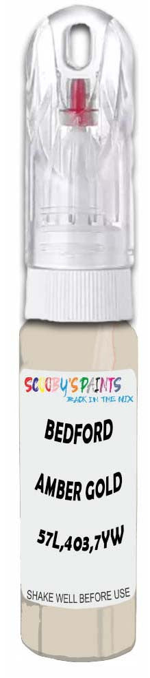 Professionally mixed touch-up paint matched to Bedford factory colour 57L,403,7YW – Amber Gold Metallic for model years 1976–1981. Ideal for repairing stone chips, light scratches and minor blemishes while helping to prevent corrosion.