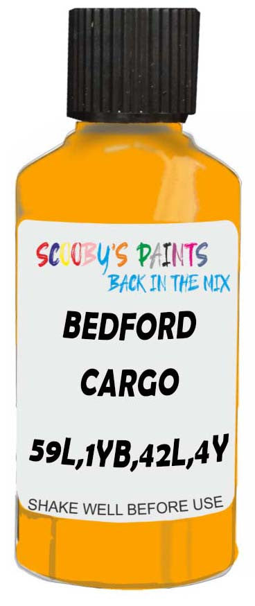Professionally mixed touch-up paint matched to Bedford factory colour 59L,1YB,42L,4YW,555 – Cargo Yellow for model years 1976–1996. Ideal for repairing stone chips, light scratches and minor blemishes while helping to prevent corrosion.