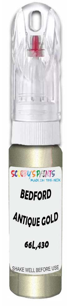 Professionally mixed touch-up paint matched to Bedford factory colour 66L,430 – Antique Gold Metallic for model years 1981–1984. Ideal for repairing stone chips, light scratches and minor blemishes while helping to prevent corrosion.