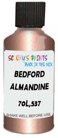 Professionally mixed touch-up paint matched to Bedford factory colour 70L,537 – Almandine Red Metallic for model years 1983–1987. Ideal for repairing stone chips, light scratches and minor blemishes while helping to prevent corrosion.
